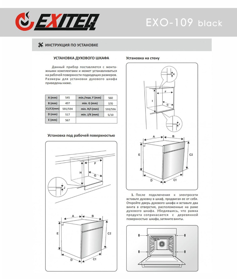 В комплекте | - Глубокий противень, глубиной 40 мм из эмалированной стали - Хромированная решётка - Универсальный противень стандартной глубины 20 мм из эмалированной стали - Вертел - Хромированная рамка для вертела - 2 винта для крепления духового шкафа в кухне - Инструкция по эксплуатации - Схема монтажа (в инструкции) | |