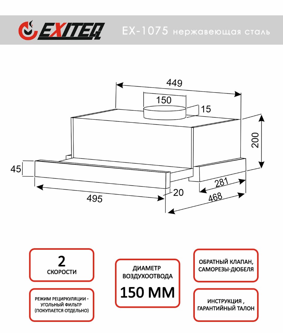 Вытяжка кухонная встраиваемая EXITEQ EX-1075