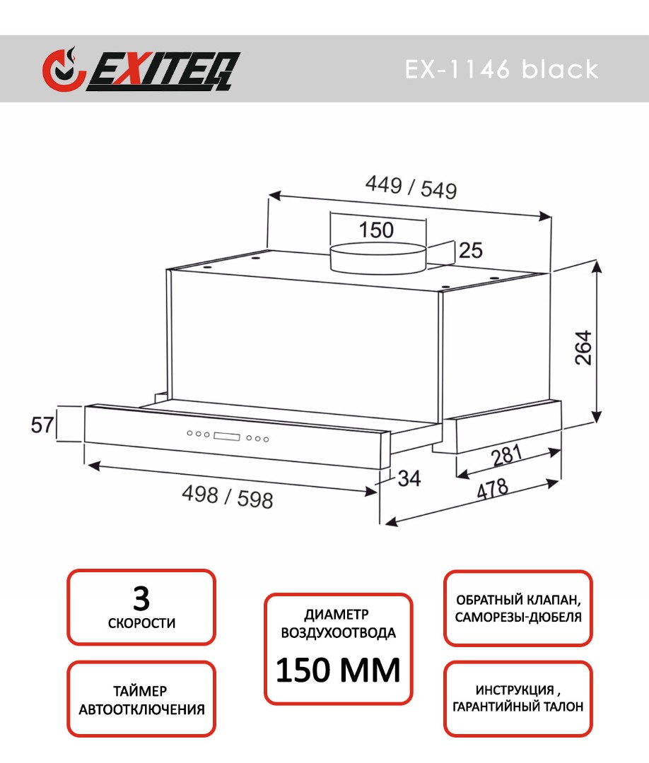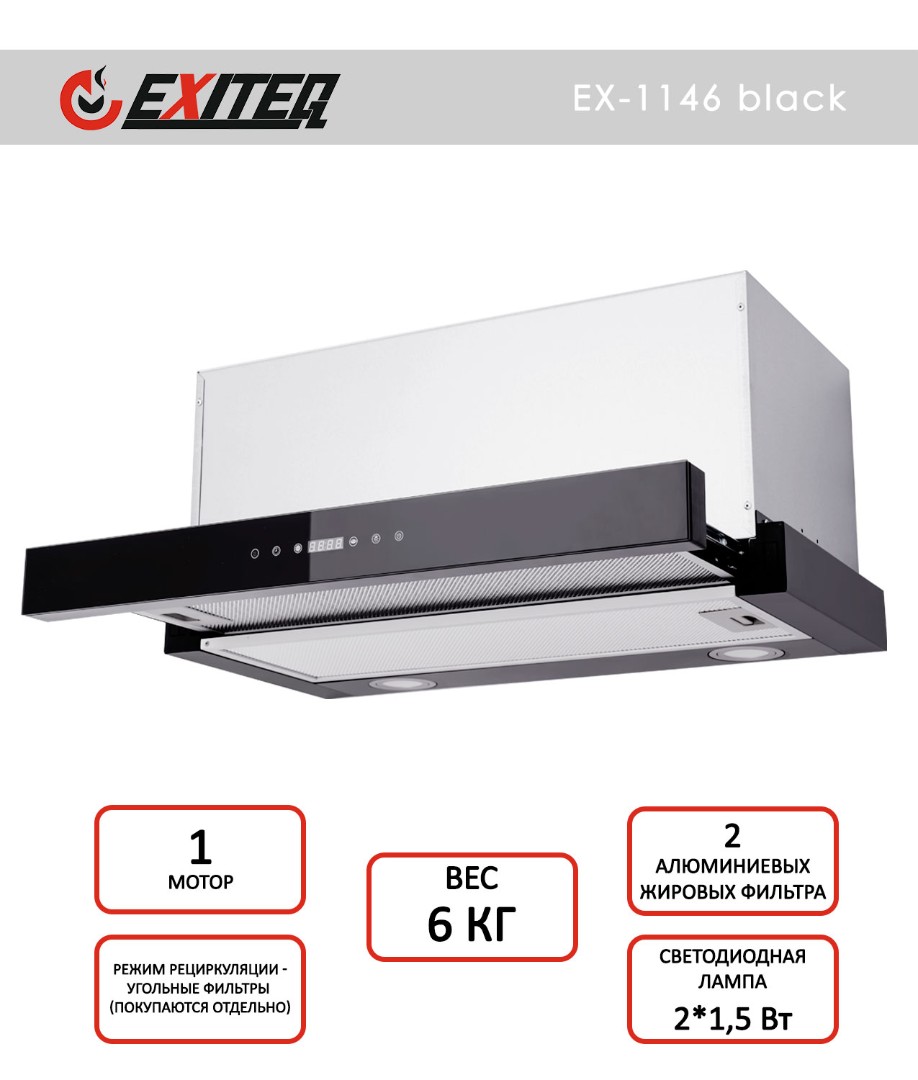 Вытяжка кухонная встраиваемая EXITEQ EX-1146 black