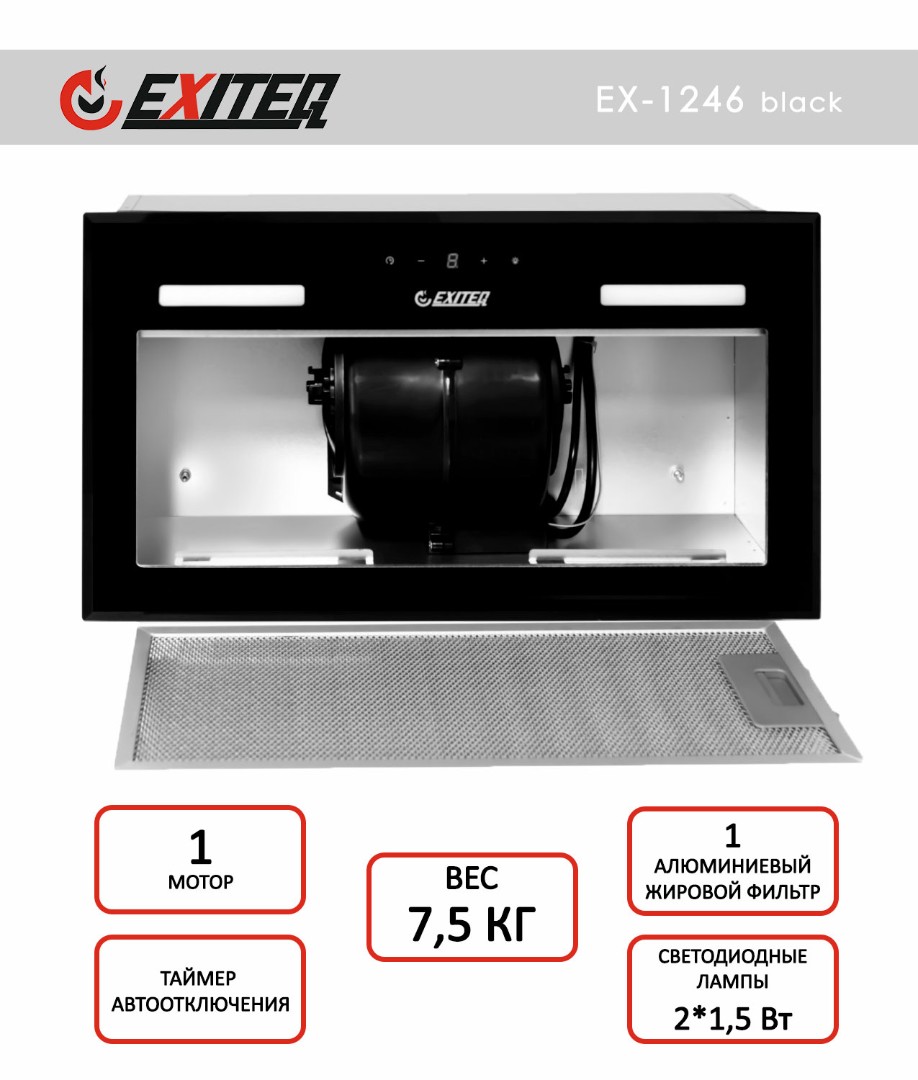 Вытяжка кухонная встраиваемая EXITEQ EX-1246 black