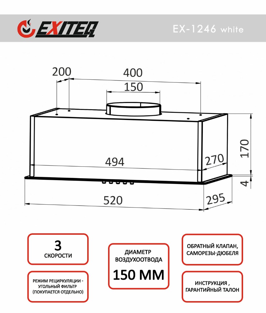 Вытяжка кухонная встраиваемая EXITEQ EX-1246 white