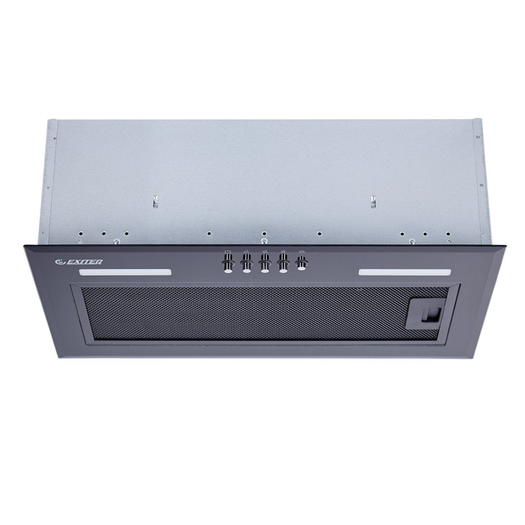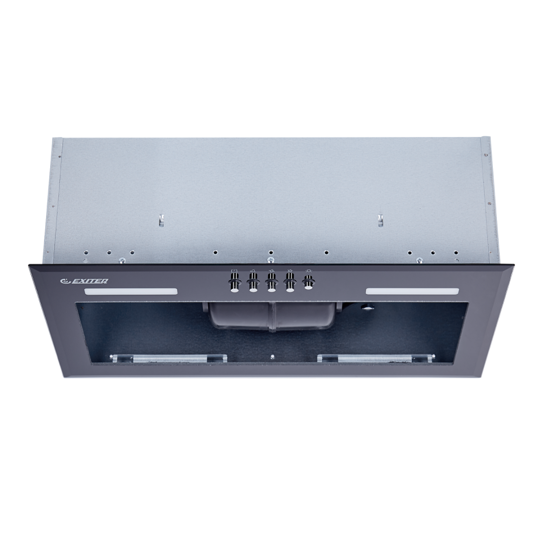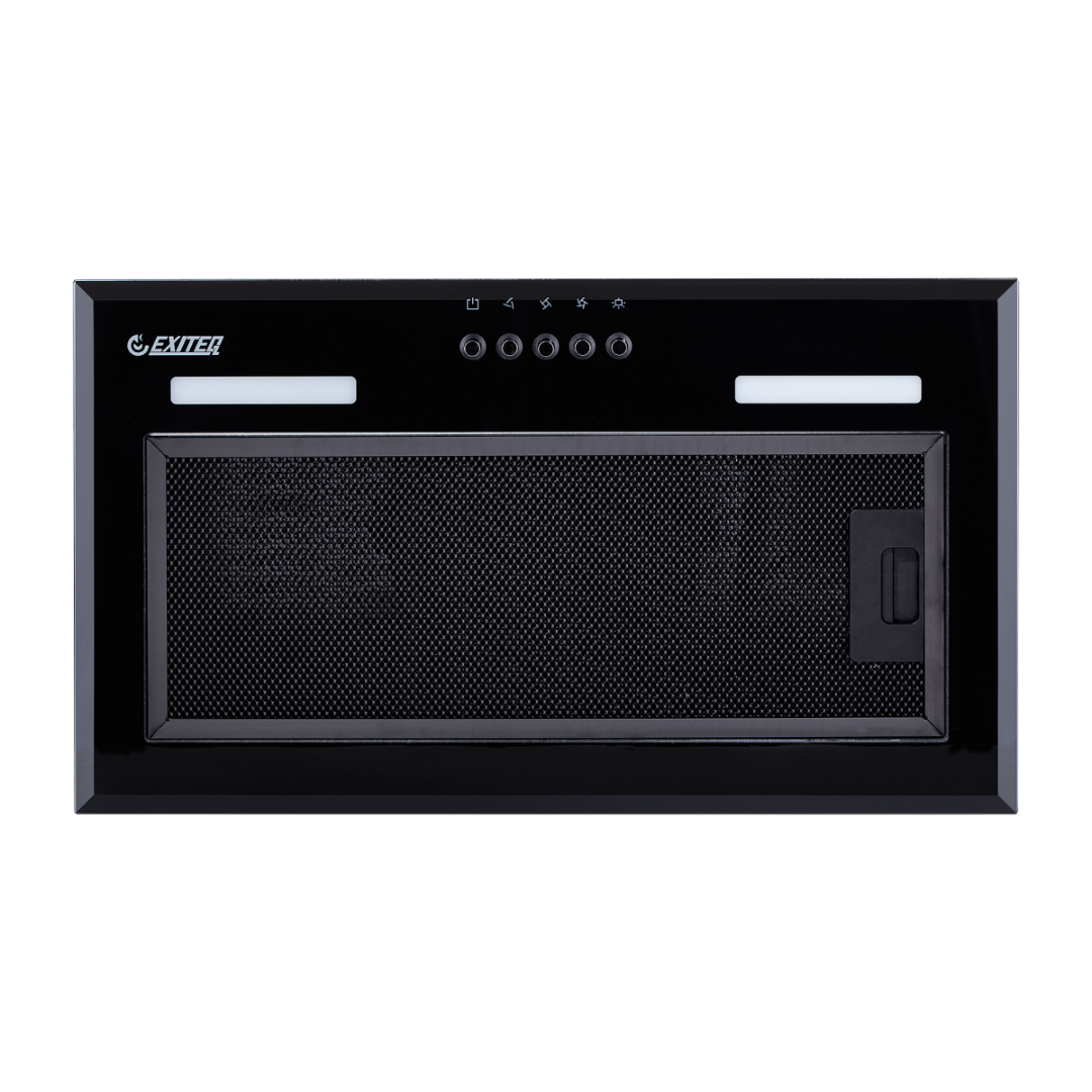 EX-1346 - вытяжка полностью встраиваемая в корпус кухонного гарнитура, с черным фасадом из закаленного стекла с фацетом