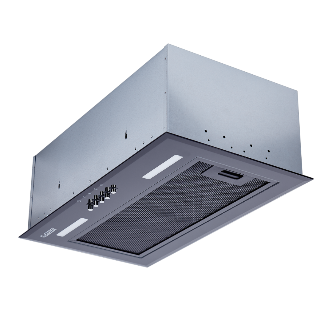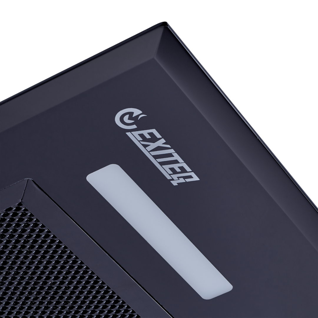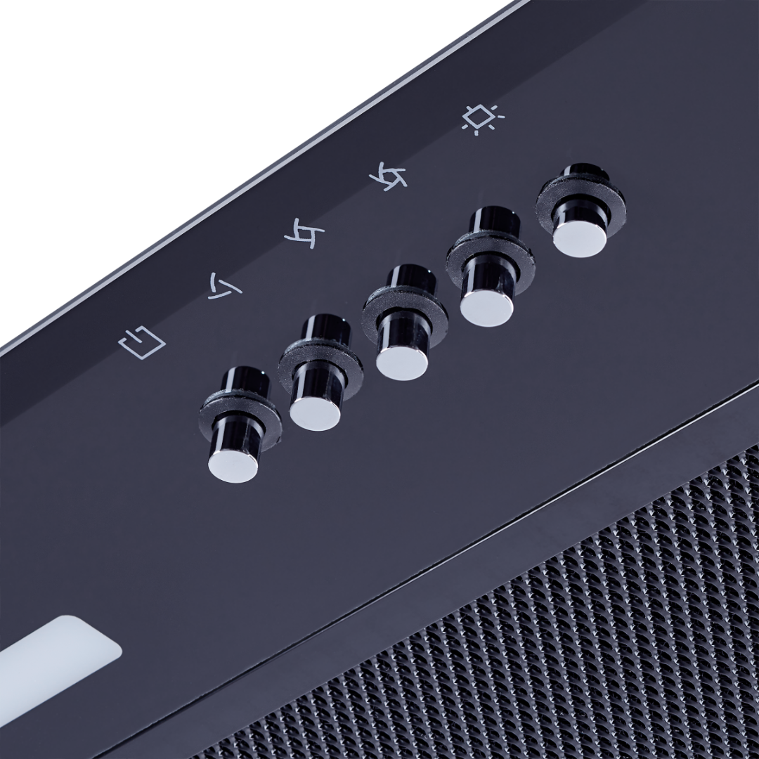 EX-1346 - вытяжка полностью встраиваемая в корпус кухонного гарнитура, с черным фасадом из закаленного стекла с фацетом