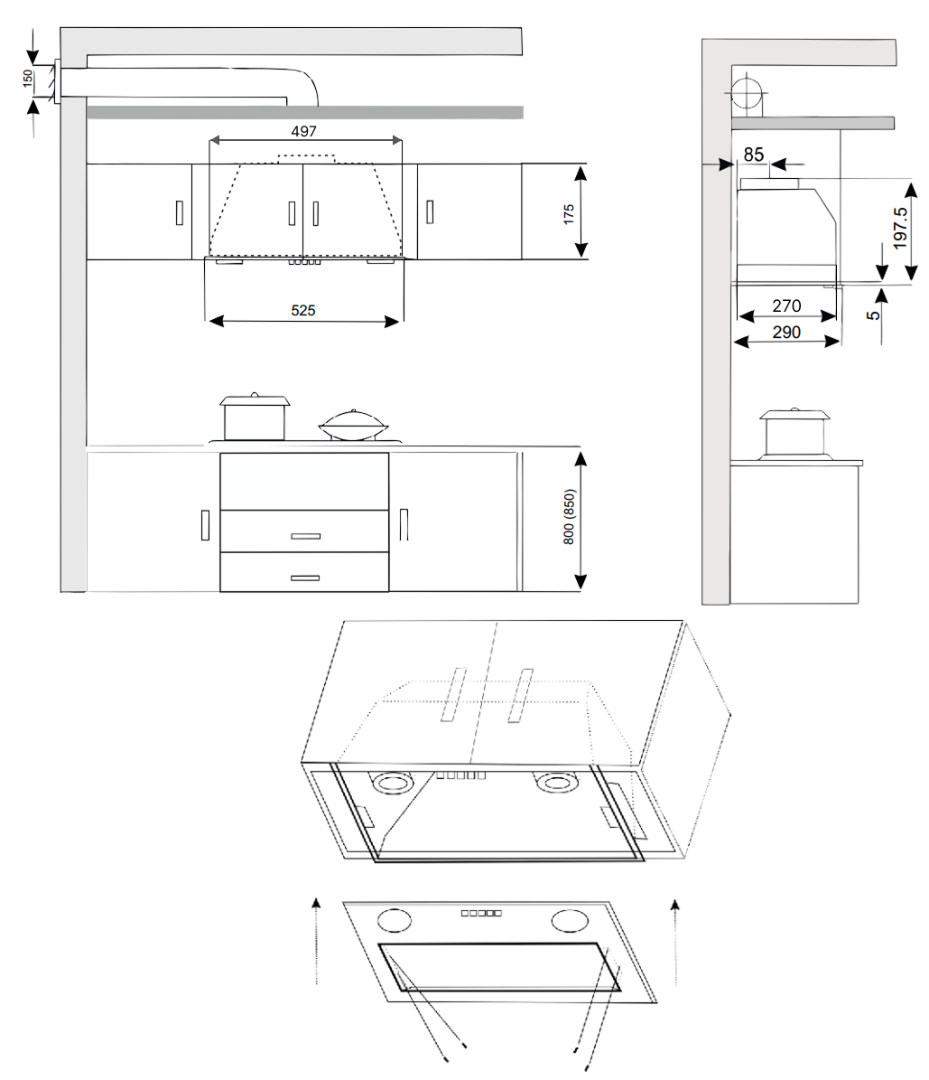 Полновстраиваемая вытяжка EXITEQ EX-1446 inox