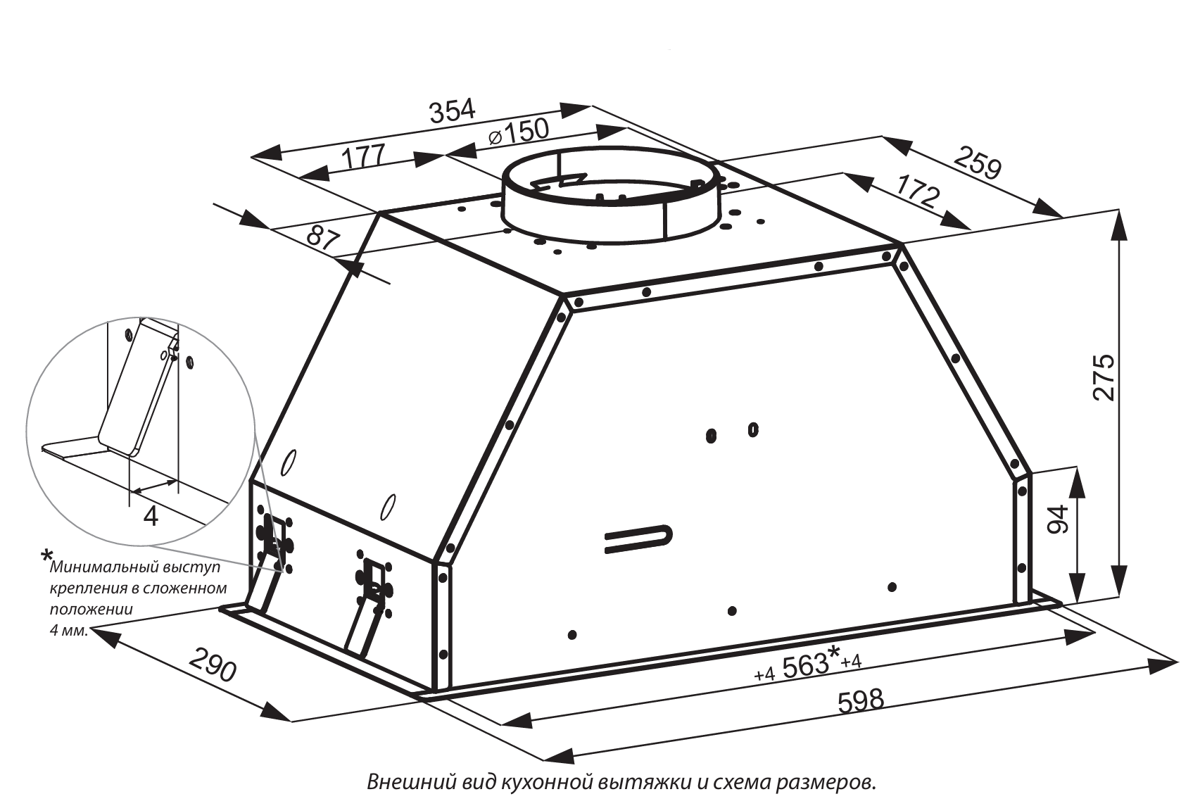 Полновстраиваемая вытяжка в черном корпусе EXITEQ EX-6036 black