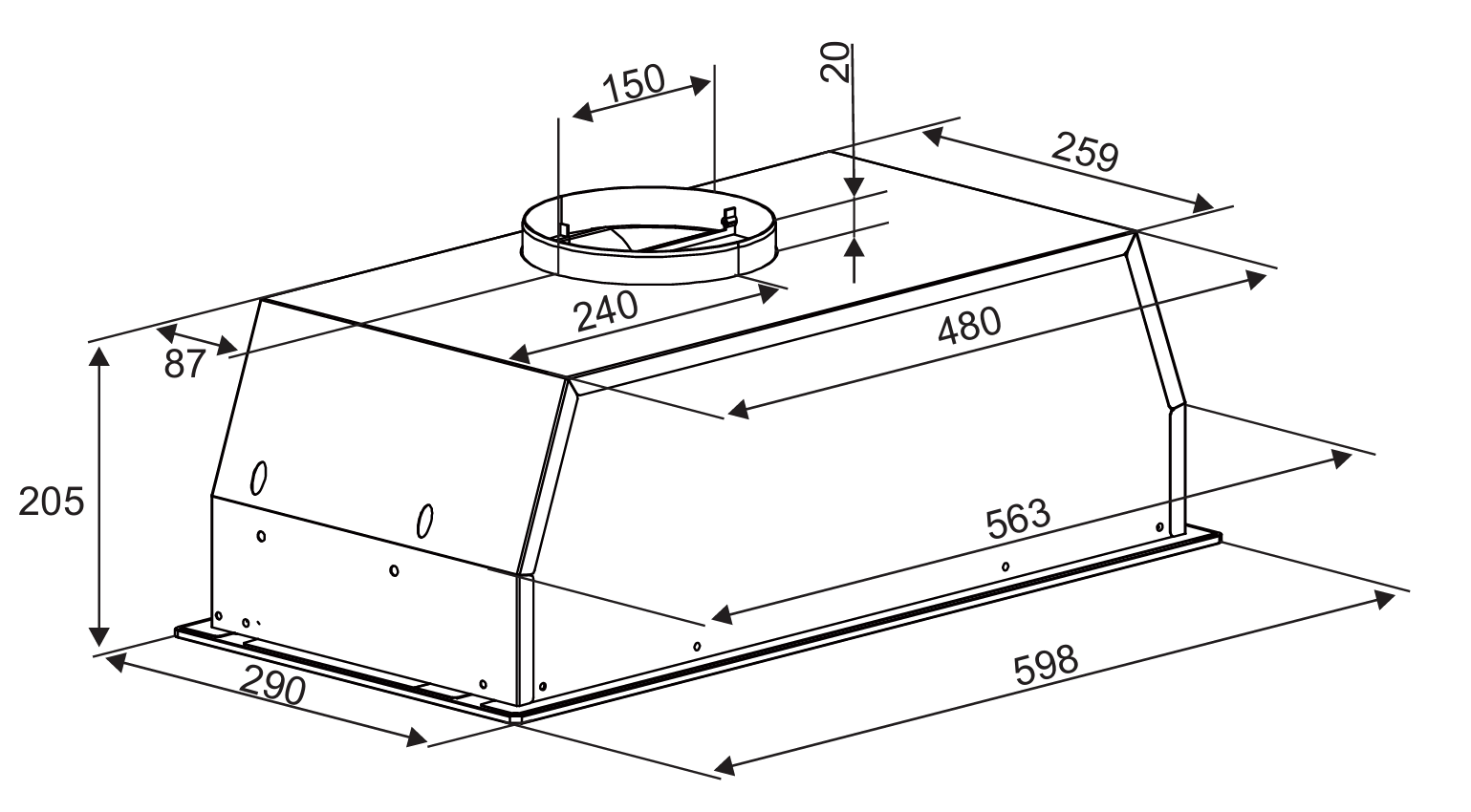 Полновстраиваемая вытяжка в черном корпусе EXITEQ EX-6076 black