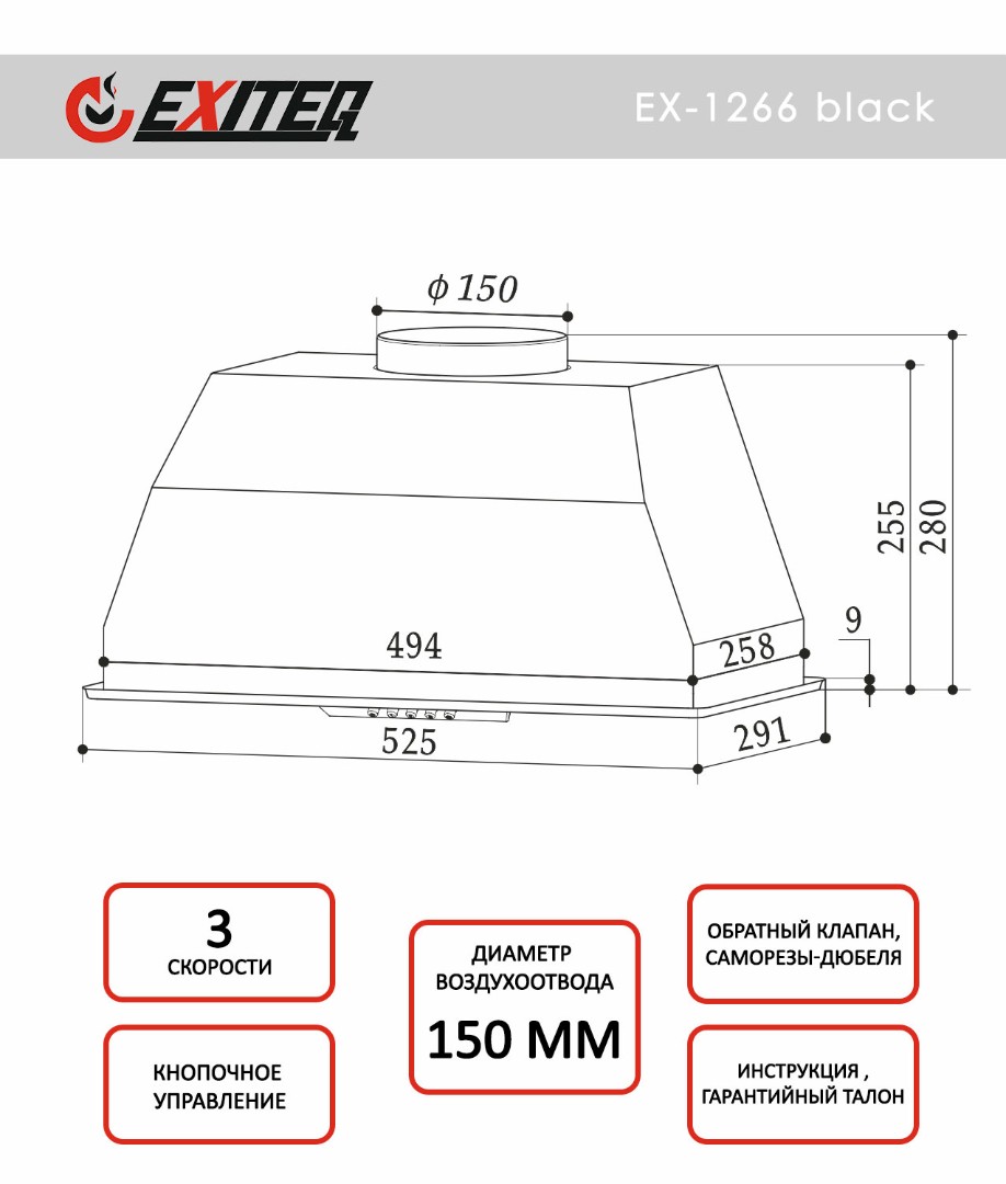 Вытяжка кухонная встраиваемая EXITEQ EX-1266