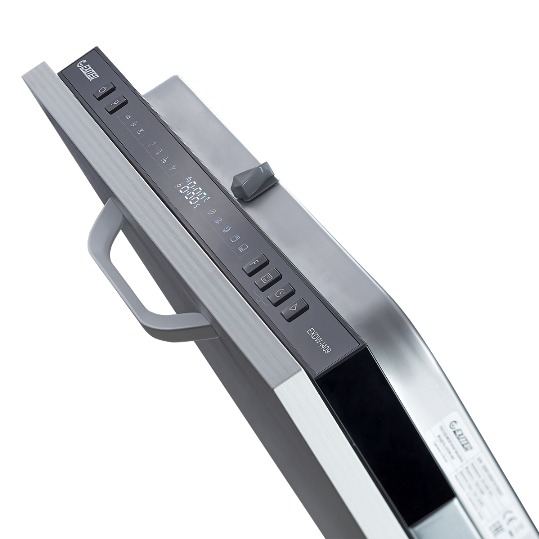 Панель управления располагается на торце двери. В модели EXDW-I409 7 программ: ECO, Авто, Гигиена, Стекло, 90 минут, Быстрая, Замачивание. Установленая программа отображается на индикаторе.