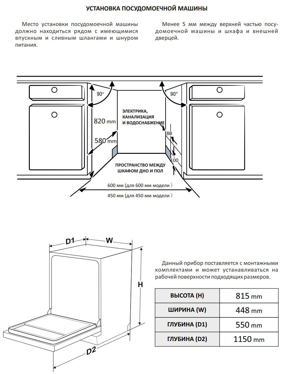| Максимальная загрузка (комплектов посуды) | 10 | |
