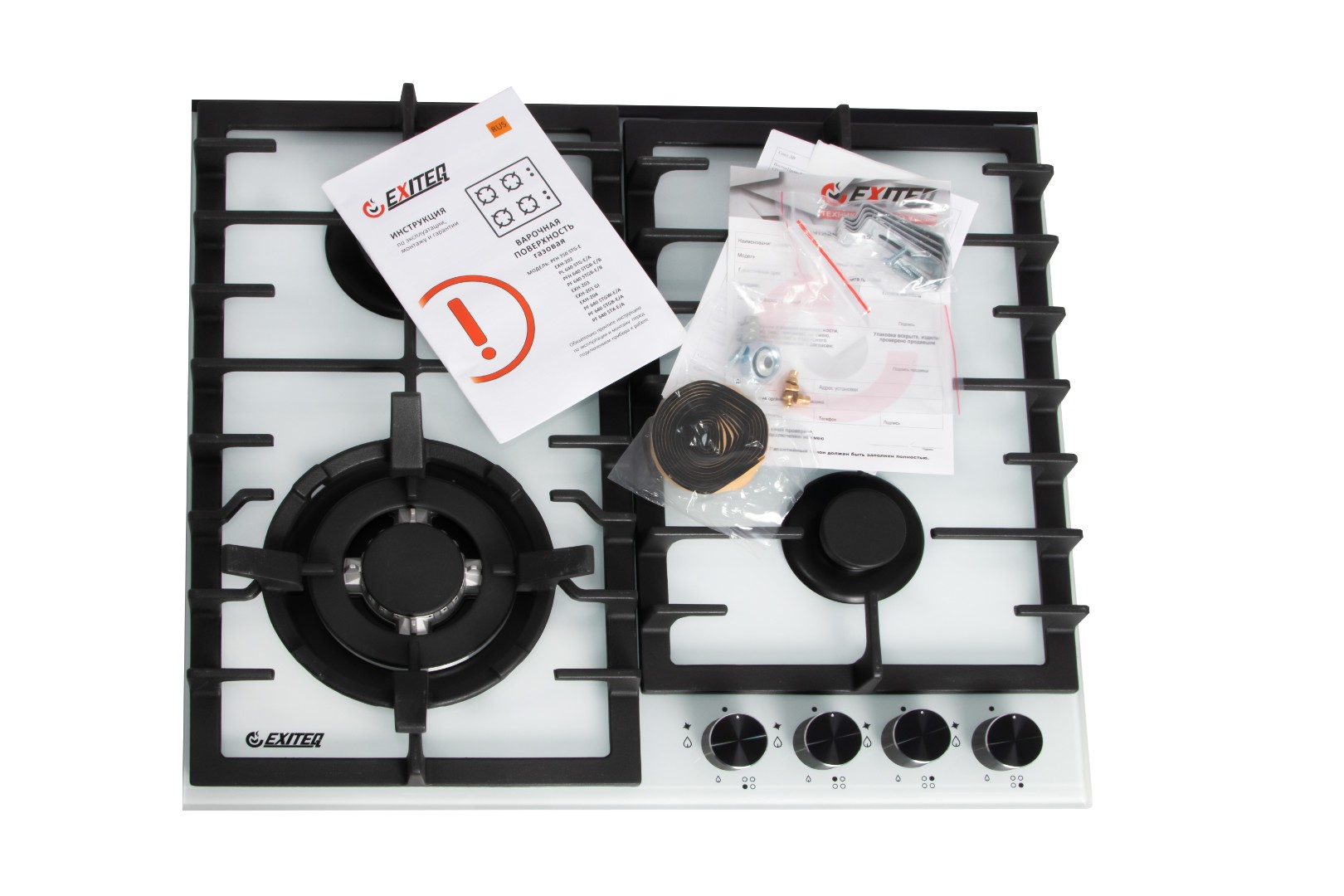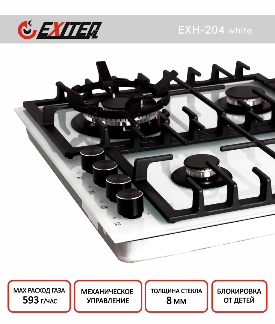 Встраиваемая варочная панель EXH-204 white продается как отдельно, так и в комплекте со стильным белым духовым шкафом.