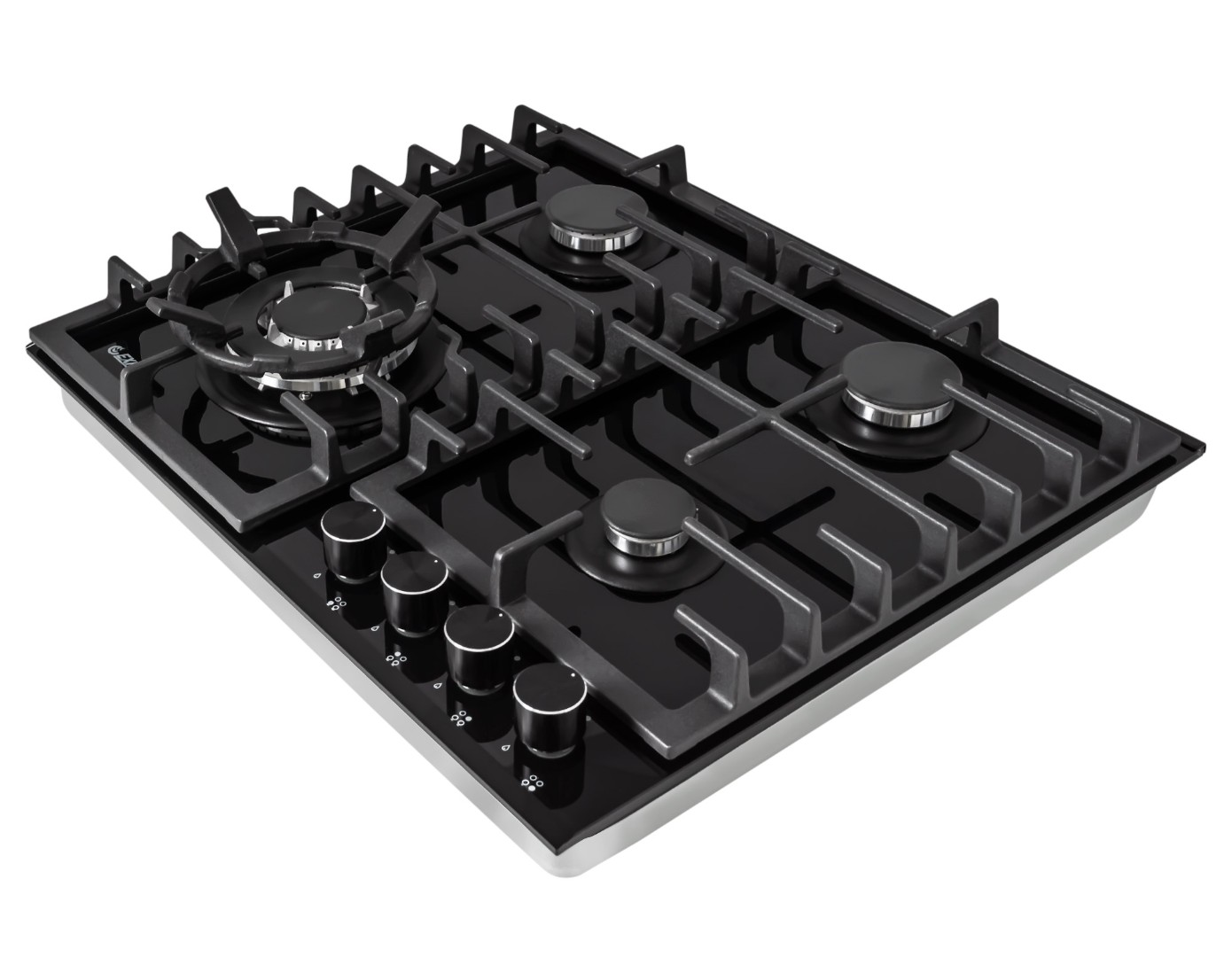 | Конфорки мощностью | 1 wok-конфорка с тройным пламенем 3,80 кВт, 2 средние конфорки 1,75 кВт, 1 малая вспомогательная конфорка 1,00 кВт | |
